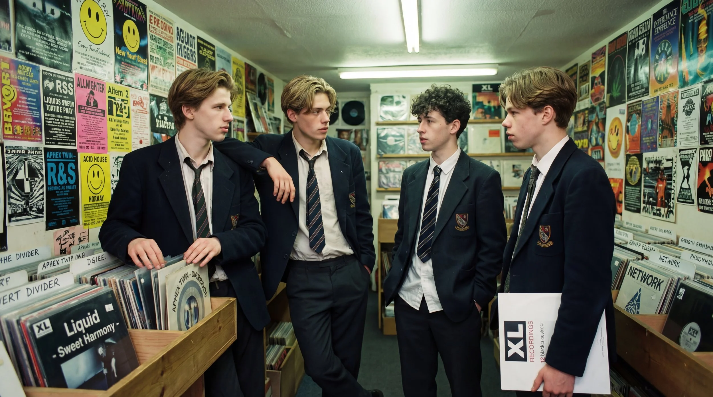 Through record shops, pirate radio and whispered recommendations, they discover the emerging rave scene. In dark warehouses and open fields, beneath strobes and the aura of the music, they encounter a culture where class and status momentarily dissolve. On the dance floor, hierarchy collapses. Belonging is instant. For the first time, they are not outsiders.